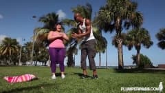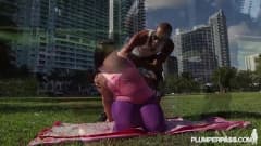 Esta mulher está determinada em queimar as calorias possíveis. Ela contrata um treinador pessoal para fazer exercício ao ar livre, exercício sexual.