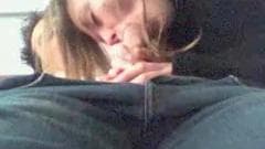 Esta loira faz um boquete ao seu namorado