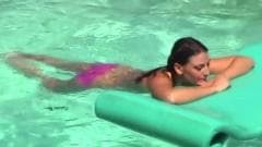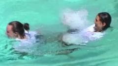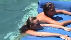 Um pequeno momento engraçado e íntimo entre duas mulheres lindíssimas que irão sem dúvida aproveitar bem a piscina e se divertir à grande !
