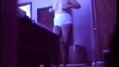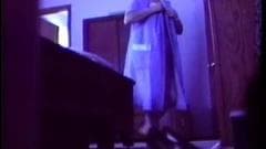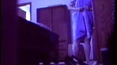 Alguém escondeu uma câmera no quarto desta velha mulher e grava enquanto ela se veste e despe-se,ela não tem idéia!