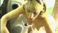 A bela loira está se prepara para dar um belo boquete ao namorado dela no carro e estar ao ar livre no carro dá mais tesão.