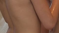 Ela gosta de sentir o corpo de sua amiga. Ela o esfrega e o esfrega com óleo. Os dois ficam muito excitados.