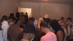 Temos aqui uma madura que vai experimentar um gang bang enquanto está numa festa.