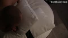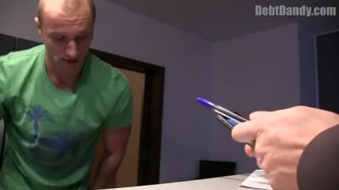 Este homem musculado está a ser castigado por não pagar as suas dividas e vai ter que fazer tudo o que ele quiser.