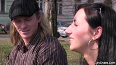 Ela está no parque e vai convencer um homem para ele ir a casa chupar o cacete do namorado. Uma boa chupada é a ver neste vídeo.