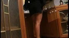 Esta mulher vai adorar estar deitada na cozinha e sentir a língua do namorado a lhe percorrer a buceta.