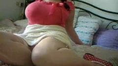 Esta puta gorda adora ser o centro das atenções e é por isso que ela está na sua cama com as pernas bem abertas e cobrindo-se de creme.