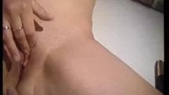 Ela está se masturbando feliz sozinha com seu marido a gravar, mas ele não resiste a ela e tem que por os dedos na bunda dela, ela adora!