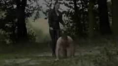 Ela realmente sabe como dominar o seu cão. Ela dá chicotadas depois de o ter levado para um passeio, ela até vai receber um sapato no saco!