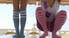 Estas duas meninas querem ter algum divertimento e é por isso que elas trouxeram seus brinquedos de sexo com elas hoje, masturbando-se em cima da mesa