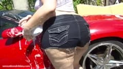 Loira gorda vai lavar o carro usando roupas sensuais e ficando molhada antes de desfrutar de uma boa penetração que termina com uma ejaculação facial.