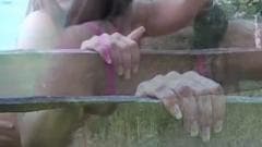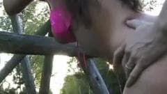 Uma morena e seu namorado gostam de transar na natureza e é por isso que gravam Ele acaba dando-lhe uma Creampie!