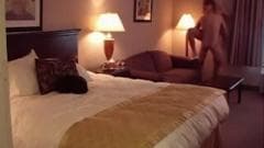Este casal gosta de fazer sextapes em quartos de hotel! Como vemos aqui eles fodem duro até ele cobrir seus pequenos seios com porra!