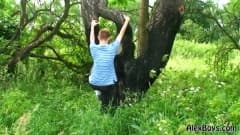 Jovem gay está de férias e decide fazer uma caminhada no campo! Ele encontra um lugar tranquilo para se sentar e se masturbar sozinho ao ar livre.