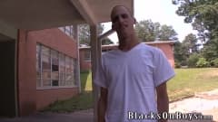Esse cara preto esteve de olho neste cara branco por algum tempo. Ele enche-se de coragem e pergunta se ele quer levar com uma rola preta na bunda.