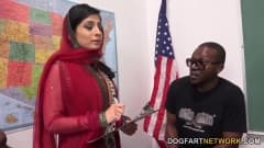 Esta linda e gostosa Árabe vai hoje aproveitar dos seus alunos todos negros e bem equipados ! Temos aqui uma grande puta que está com fome !