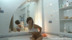 Esta mulher vai brincar com o chuveiro sozinha e vai ser mesmo muito divertido vê-la assim a tocar-se. Ela vai gemer de prazer.