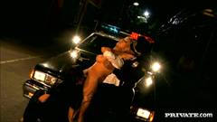 Este preto nem quer acreditar quando vê esta loira toda boa a aparecer assim na rua ! Os polícias gostam e nós também !