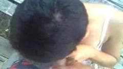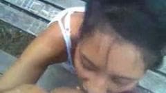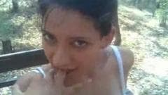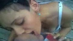 É ao ar livre que esta morena começa a lamber o pau do seu homem! Ele gosta do boquete que ela oferece e nós também!