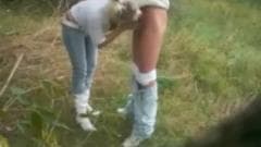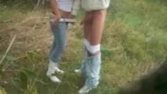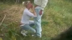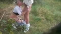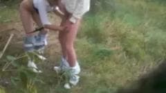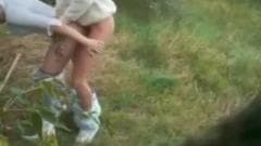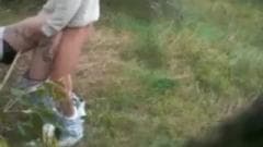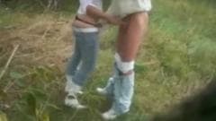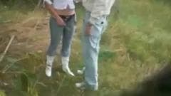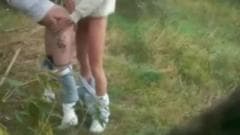 Estão num campo isolado e começam a trocar uns beijos e como estão muito excitados e como ninguém está a ver começam a fazer sexo.