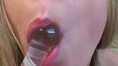 ![Ela parece sexy sentada em um vibrador azul Ela parece sexy sentada em um vibrador azul]()