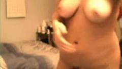 Esta mulher sabe que tem um bom par de mamas e ela quer mostrá-las para nós hoje. Em seguida, ela se despe em frente a câmera.