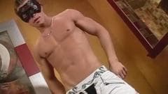 Este cara musculado quer que o seu amigo lhe bata uma boa punheta para coloca-lo completamente excitado. Ele fica muito excitado no sofá.