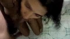 Ela dá um bom boquete no chuveiro e seu namorado adora o que essa bela gata do Sri Lanka faz! Não a perca em ação, chupando duro.