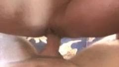Ela se senta no pau deste homem, porque ela quer sentir sua buceta ficando mais molhada e húmida! Ele não se cansa de montar o pau!