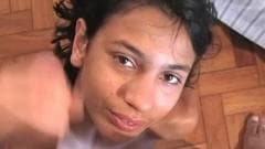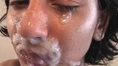 Aqui está uma vagabunda muito motivada, que começa a chupar um pau grosso antes de levar na buceta e no rabo, até ficar com a porra toda no rosto!.