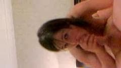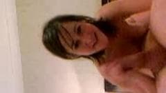 Esta morena sabe exatamente o que seu marido gosta e o que o faz ejacular, razão pela qual ela bate uma punheta em frente a camera!