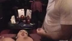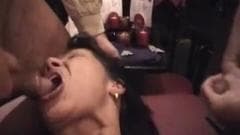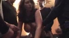 Esta mulher tem a sorte de estar nesta cena cercada por um grupo de homens que querem transar com ela e ejacular sobre ela!