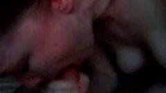 Esta puta morena gosta de chupar pau e ela não se importa que seu namorado esteja gravando a cena, porque ela sabe como fazê-lo ejacular.