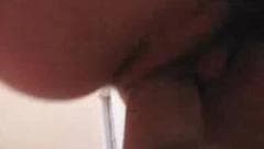 Cena amadora com um grande plano de uma morena chupando um pau antes de fodê-lo e ficamos tão excitados vendo tudo isto de tão perto!
