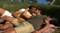 ![Três caras excitados fodem na natureza Três caras excitados fodem na natureza]()