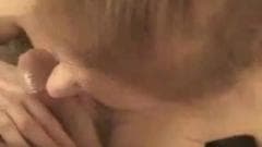 Ela está ansiosa para fazer seu homem ejacular e começa com um bom boquete antes de masturbá-lo e ele jogar sua porra nos seus peitos suculentos!