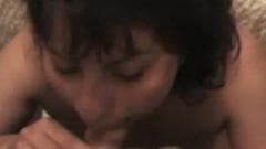 Ela é boa a chupar e prova isso nesta cena colocando sua boca no pau do seu namorados até que ele enche a boca dela com porra e ela engole!