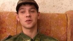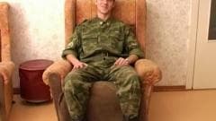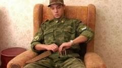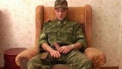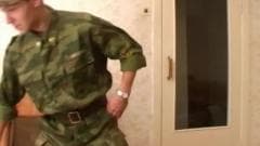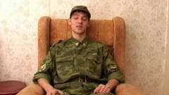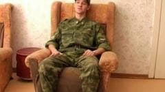 Este soldado está pronto para tirar seu uniforme para começar a se masturbar. Quando ele está animado, ele masturba duro e descarrega sobre suas bolas