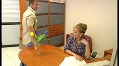 Ela vê que um cliente chegou para pedir informações e, com todo o gosto, dá tudo o que ele quer, até uma boa trepada.