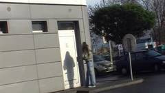 Esta puta morena questiona-se o que deverá estar no outro lado do buraco no banheiro e descobre que há algo para chupar se quiser...