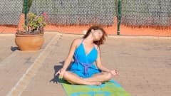 Ela é uma rapariga gostosa e adora fazer exercicio completamente nua. No patio da sua casa, tira a roupa para se excitar.