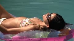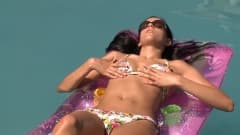 Esta bela morena não quer perder a oportunidade de se masturbar na piscina enquanto relaxa, apanhando sol. Assista este vídeo.
