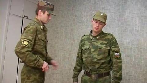 O chef vai castigar seu soldado com o cinto, mas o cara gosta tanto disso que começa a ficar excitado e bate punheta em frente ao chefe!