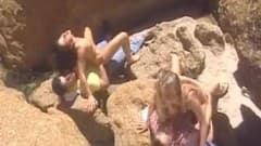 Casais em frenesím sexual no eio da praia! Esses dois casais tesudos vão foder e trocar de parceiros no meio da praia sem quaisquer tabús ou vergonhas...
