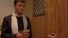 Aqui está um padre que suga um pau através de um gloryhole e ele é muito experiente, fazendo-o ejacular facilmente em seu rosto.