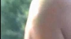 Mulher madura com seu vibrador ao ar livre