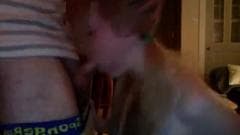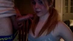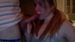 Ela está em casa com o namorado e desde que seus pais estão fora, ela decide ligar a câmera e fazer uma sextape chupando o pau dele!