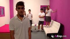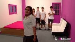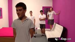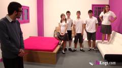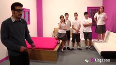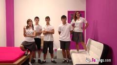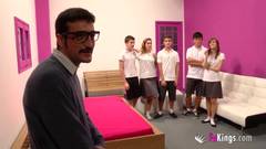 Está uma cena de sexo em grupo entre estudante muito jovens que se querem divertir transando juntos. Elas gozam de varias rolas ao mesmo tempo.