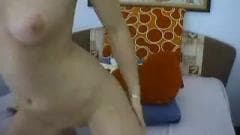 Safadona de 20 anos com um belo par de mamas e um bichano rapado que nos deixa animados com um striptease em frente da câmera!