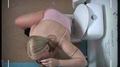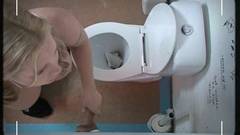 Ela vai para o banheiro público sabendo o que a espera e quando ela vê esse pau pequeno através da parede, ela começa a chupar!